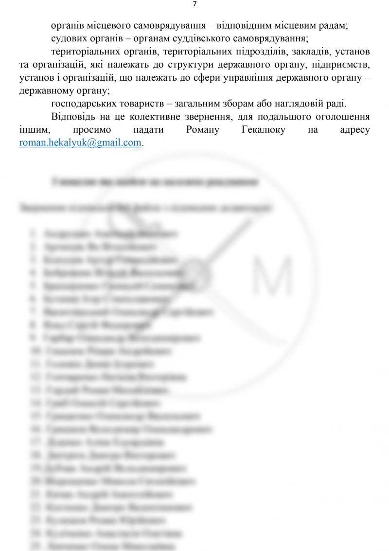 Авторы требуют восстановить Олега Полищука в правах, провести проверку реорганизации в ГФС, а также закрепить правительственным документом число уполномоченных в различных органах и учреждениях и разработать закон, который усиливает их институциональные возможности.