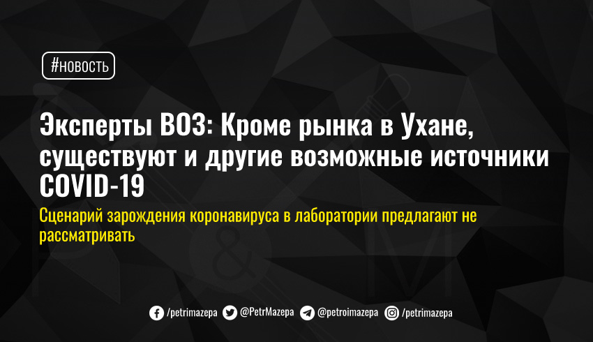 Эксперты ВОЗ: Кроме рынка в Ухане, существуют и другие возможные источники COVID-19