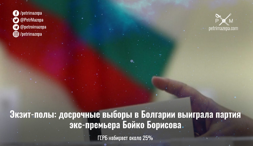 По данным экзитполов, «Гражданское движение за развитие Болгарии» (ГЕРБ) бывшего многолетнего премьер-министра страны Бойко Борисова одержал победу на четвертых парламентских выборах в стране за последние полтора года.