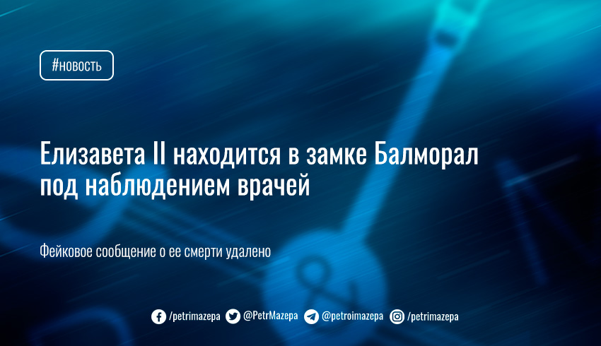 Королева Великобритании Елизавета II сейчас в замке Балморал (своей шотландской резиденции) под медицинским наблюдением.