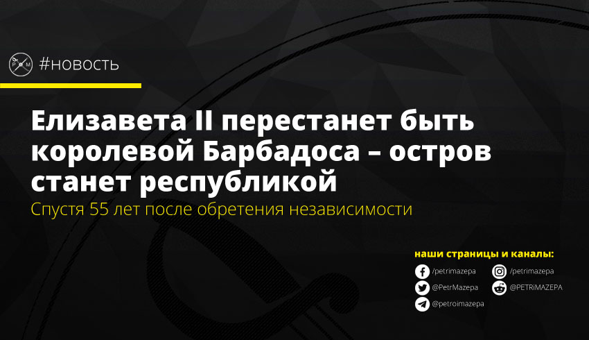 Королева Великобритании Елизавета II официально перестает быть монархом Барбадоса. Со следующего года остров становится республикой, и его жители смогут самостоятельно выбирать главу государства.