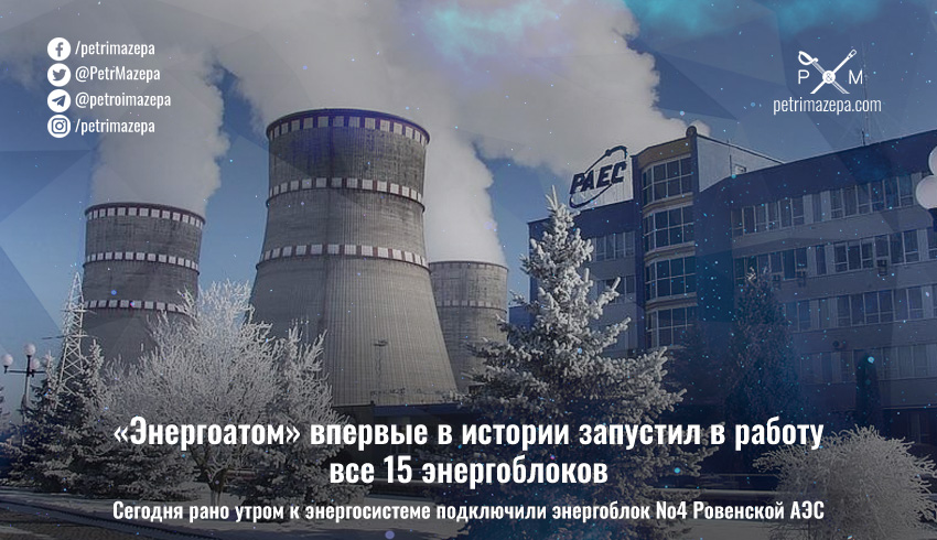НАЭК «Энергоатом» в воскресенье утром подключил к энергосистеме энергоблок №4 Ровенской АЭС, таким образом впервые в истории запустив в работу все имеющиеся 15 енергоблоков.