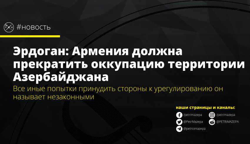 Эрдоган подчеркнул, что путь к миру и стабильности в регионе откроет только освобождение оккупированных территорий Азербайджана. Остальные инициативы и попытки принуждения сторон к урегулированию он считает незаконными, несправедливыми, что «соответствует лишь интересам Армении».