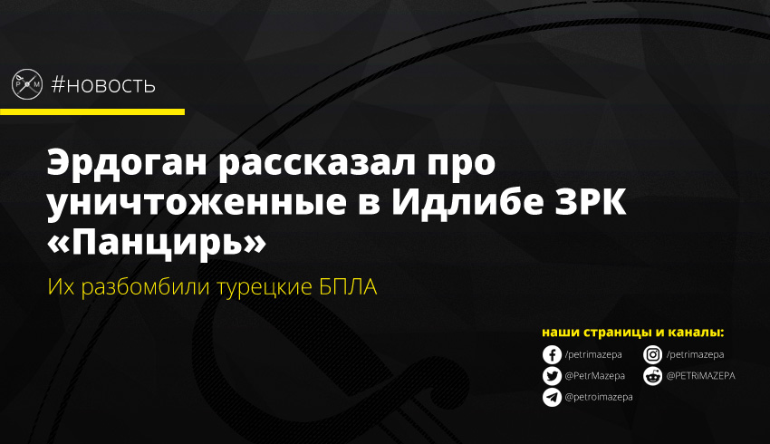Об этом президент Турции сообщил во время визита в Брюссель. «Конечно, в настоящее время в Идлибе есть «Панцири». Есть и в Ливии. В Идлибе мы уничтожили 8 «Панцирей» с помощью БПЛА. Их стоимость очень высока, это важные системы ПВО», - цитирует Эрдогана телеканал CNN Turk