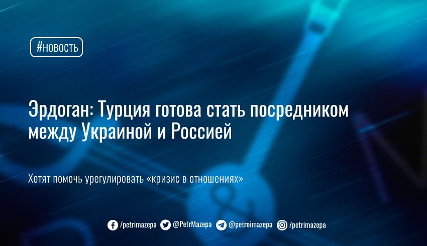 Президент Турции Реджеп Тайип Эрдоган заявил, что его страна готова стать посредником в урегулировании «кризиса в отношениях» между РФ и Украиной. Для этого Турция наладила контакты и с украинской стороной, и с лидером страны-агрессора Путиным.
