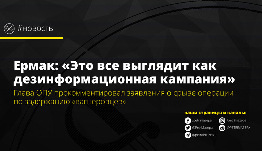 Глава ОПУ Андрей Ермак заявил, что сообщения о причастности украинских спецслужб к появлению в Беларуси боевиков ЧВК «Вагнер» выглядят как дезинформационная кампания, которую по его допущениям «некоторые внутренние силы» решили использовать против Украины накануне выборов.