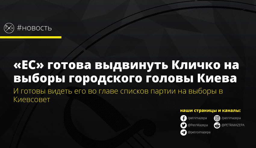 Партия «Европейская солидарность» официально заявила о готовности выдвинуть Виталия Кличко на выборах городского головы Киева, а также видеть его во главе списка «ЕС» на выборах в Киевсовет.