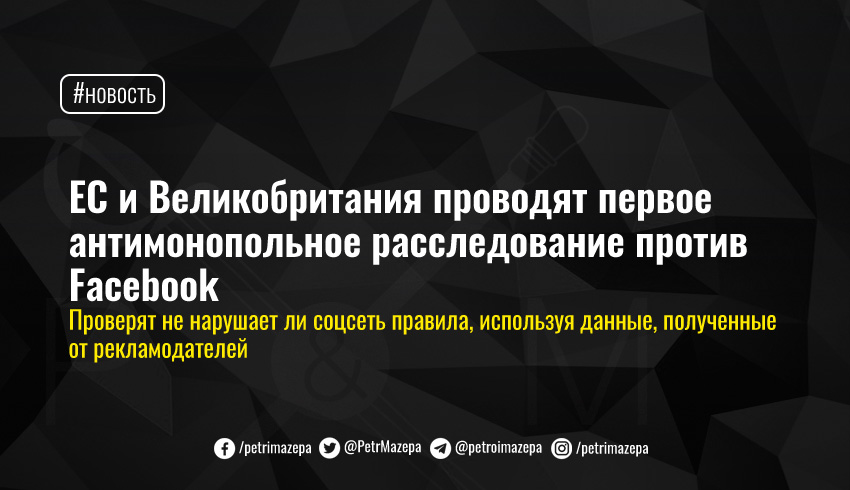 ЕС и Великобритания проводят первое антимонопольное расследование против Facebook