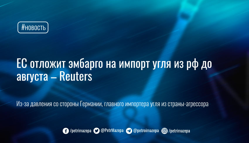 ЕС отсрочит полный запрет на импорт угля из рф до августа – Reuters