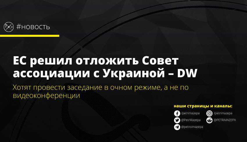 Евросоюз решил отложить Совет ассоциации Украина – ЕС, который проходит каждый год. В этом году совет должен был пройти в режиме видеоконференции, но как сообщает DW со ссылкой на источники, в Брюсселе решили отложить заседание и провести его позднее в очном режиме.