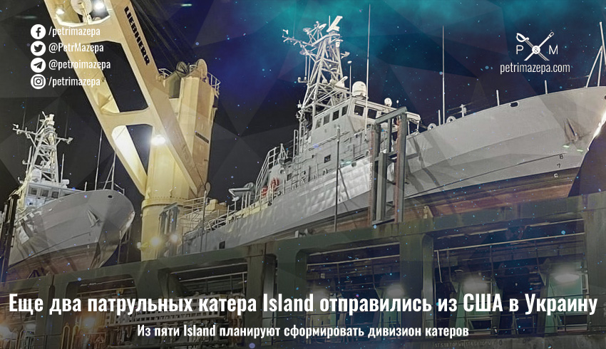 • 1 сентября прошлого года Неижпапа сообщил, что США в рамках поддержки Украины в сфере обороны и безопасности передадут ВМС еще три патрульных катера «Айленд». Вместе с уже принятыми в боевой состав флота катерами «Старобельск» и «Славянск» они составят дивизион катеров подобного класса.