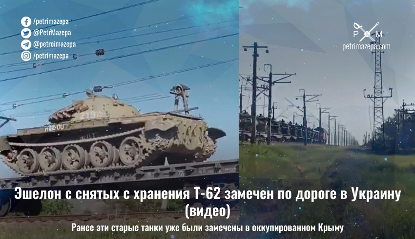 Эшелон с российскими танками Т-62, которые не производятся уже более 40 лет, замечен по дороге в Украину. За несколько дней до этого появились первые данные о том, что Т-62 появились в оккупированном Крыму, а не так давно о таких действиях противника сообщил и Генштаб ВСУ. Теперь же появилось видеоподтверждение.