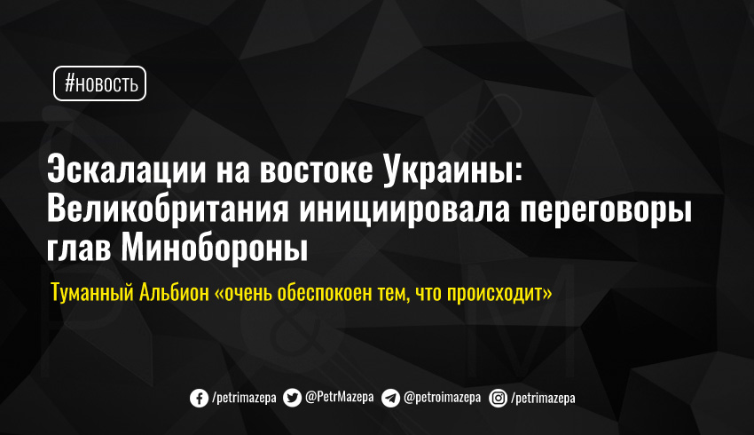 Сегодня Великобритания инициировала переговоры министров обороны двух стран из-за эскалации ситуации на востоке Украине. Вчера уже состоялись переговоры между командующими Вооруженных сил.