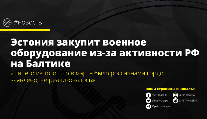 Эстония планирует закупить военное оборудование, в том числе морские мины, морские радары и системы связи из-за увеличения активности РФ в Балтийском регионе. Как заявил министр обороны Эстонии Юри Луйк, российское руководство не выполнило ничего, о чем заявляло в марте, и не сократило количество учений.