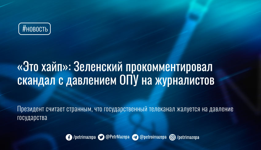 Президент Владимир Зеленский прокомментировал скандал с давлением Офиса президента на журналистов – он заявил, что это хайп, ничего через ОПУ не согласовывали, никаких списков, и вообще он считает странными заявления государственного телеканала о давлении со стороны государства.