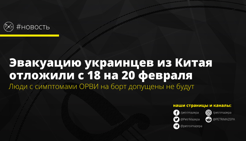 • 10 февраля посольство Украины в КНР анонсировало эвакуацию для украинцев из провинции Хубэй на 11 февраля. Но она так и не случилась. Позже в Кабмине сообщили про эвакуацию 18 февраля.