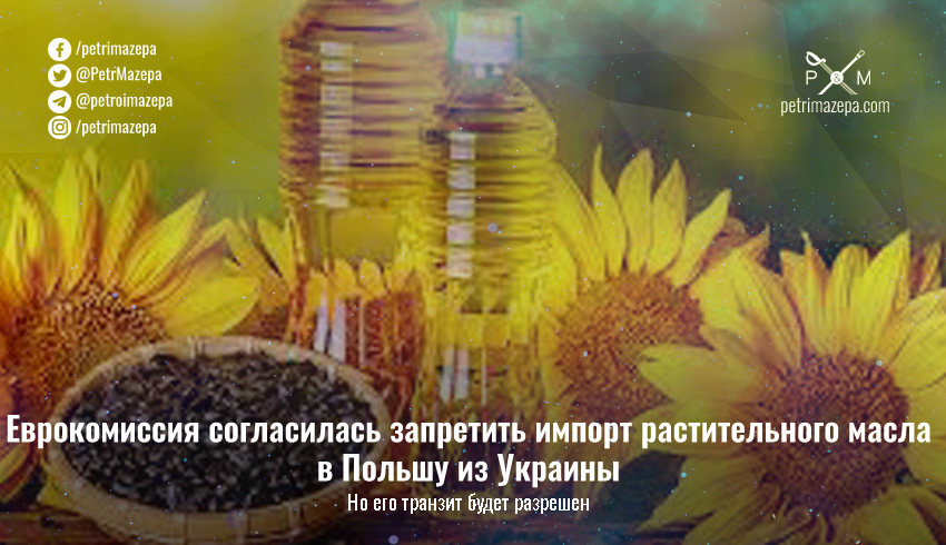 Еврокомиссия расширила список товаров, которых касается запрет на импорт в Польшу из Украины. Подсолнечное масло было добавлено в этот список, но его транзит будет разрешен. Польша потребует запрета на ввоз муки, меда, сахара, мягких фруктов (замороженных), яиц, мяса (особенно птицы), молока и молочных продуктов, а также яблочного сока и концентрата.