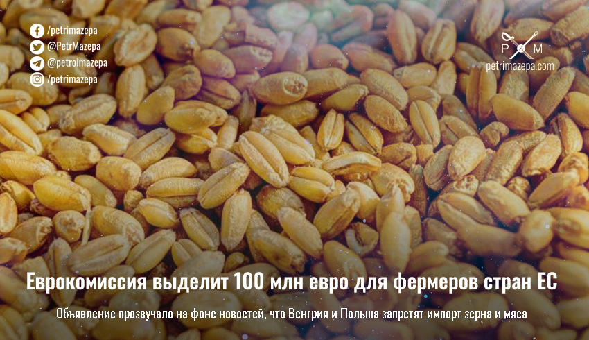 Европейская комиссия в ближайшие дни планирует выделить 100 млн евро для фермеров стран ЕС, пострадавших от наплыва украинской сельскохозяйственной продукции, что привело к так называемому зерновому кризису.