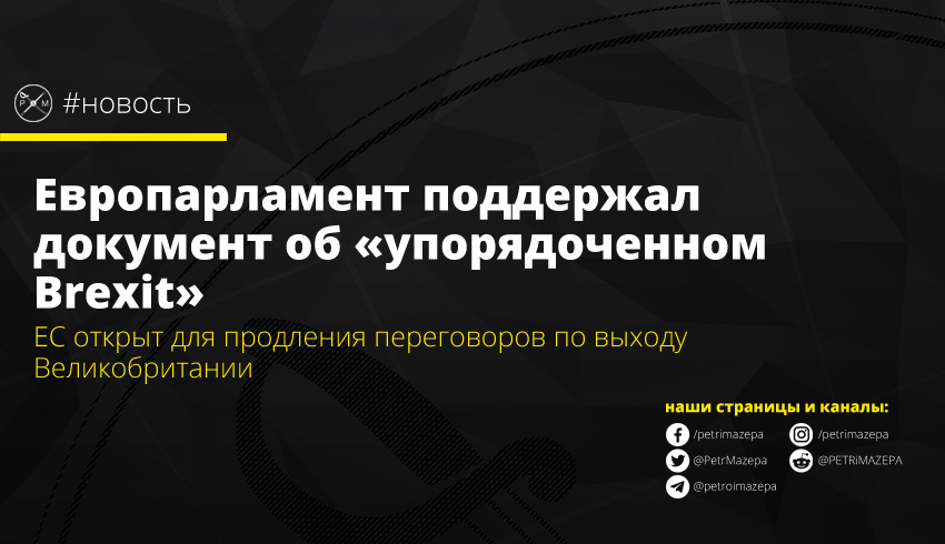 Европарламент поддержал документ об «упорядоченном Brexit», основанный на предложенном ранее Соглашении о выходе. Принятый документ позволяет Великобритании отстрочить свой выход из Европейского союза. По словам депутатов Европарламента, документ является сбалансированным и обеспечивает правовую определенность.