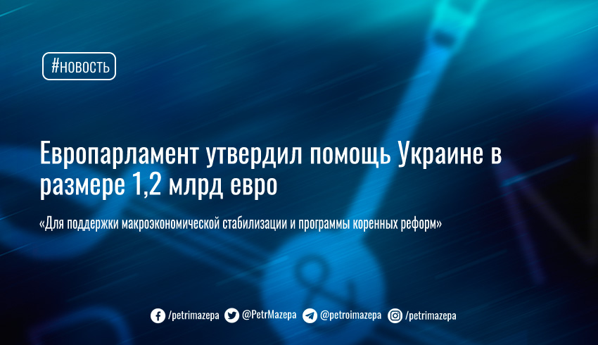 Депутаты Европарламента одобрили решение Совета ЕС о выделении Украине нового пакета макрофинансовой помощи в размере 1,2 млрд евро. О соответствующих итогах голосования  сообщили на заседании законодательного собрания в Страсбурге.