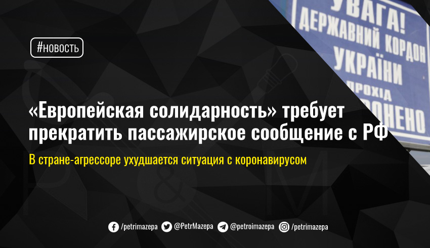 Поэтому в «Евросолидарности» предлагают в дополнение к запрету авиа и железнодорожных перевозок, прекратить также автомобильное и автобусное сообщение с РФ до нормализации там эпидемической ситуации.