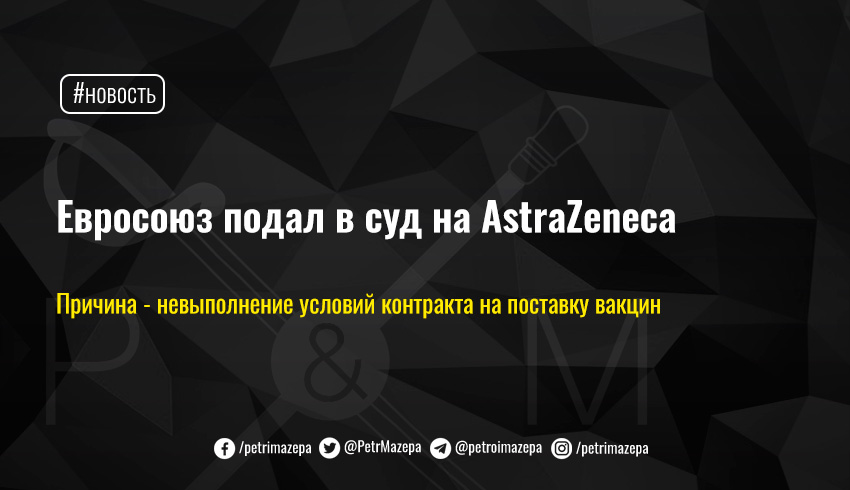 Евросоюз подал иск против производителя вакцины против коронавируса AstraZeneca за несоблюдение условий контракта.