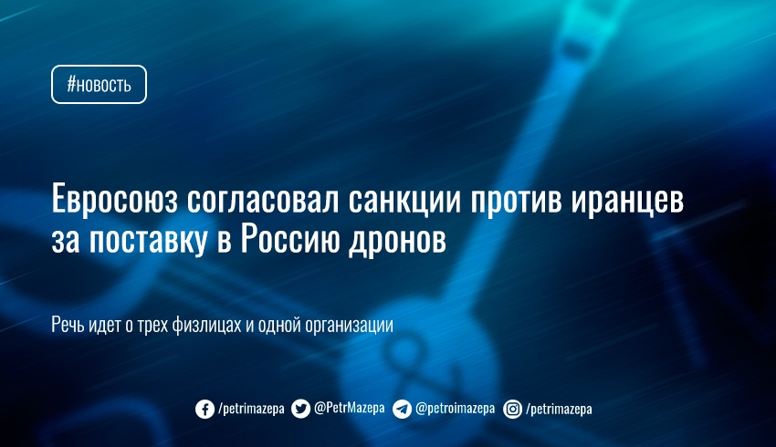 Европейский Союз согласовал санкции против трех физических лиц и одной организации, поставляющих в Россию дроны.