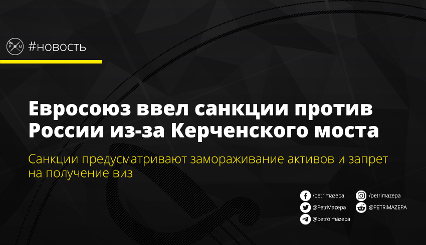 Евросоюз согласовал персональные санкции против физических лиц и предприятий России за строительство Керченского моста.