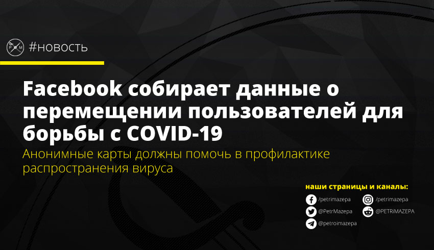Компания Facebook будет собирать данные о местонахождении и перемещении пользователей в рамках борьбы с COVID-19. Компания создаст карты перемещения населения, включая карты определения совместного местоположения и тенденции передвижения, что позволит специалистам спрогнозировать распространение заболевания и оценить разумность введения профилактических мер.