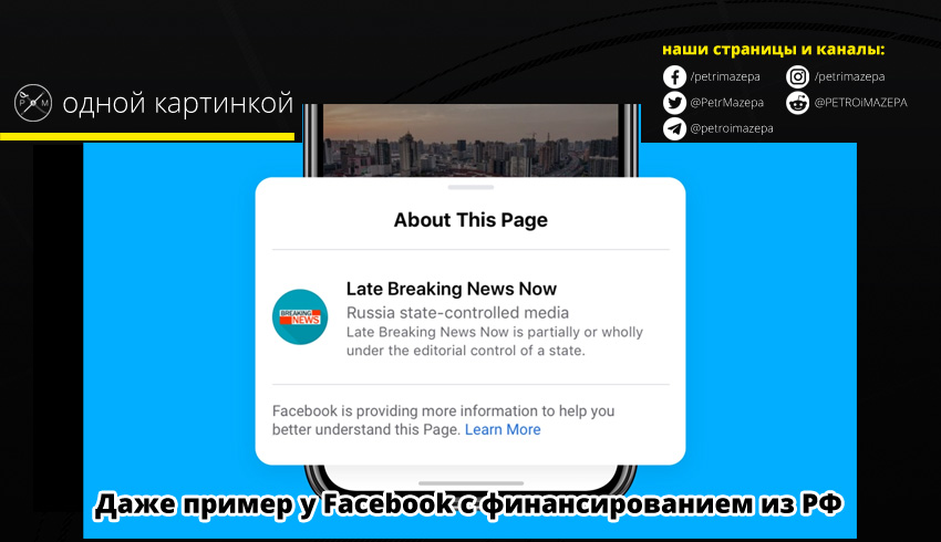 Администрация Facebook сообщила, что начала маркировать средства массовой информации, которые полностью или частично находятся под контролем правительств. Таким образом в Facebook добиваются большей прозрачности предоставления информации.