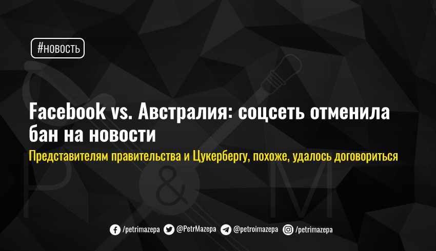 Facebook vs. Австралия: соцсеть отменила бан на новости