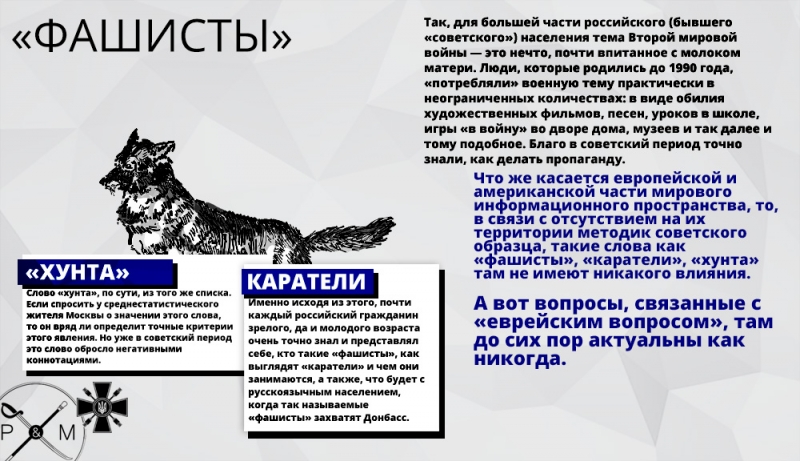 Что же касается европейской и американской части мирового информационного пространства, то, в связи с отсутствием на их территории методик советского образца, такие слова как «фашисты», «каратели», «хунта» там не имеют никакого влияния.
