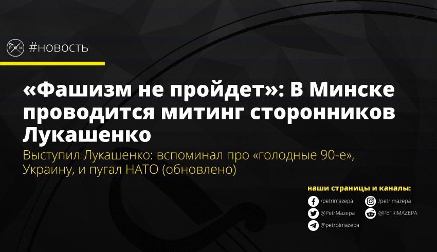 «Фашизм не пройдет»: В Минске проводится митинг сторонников Лукашенко