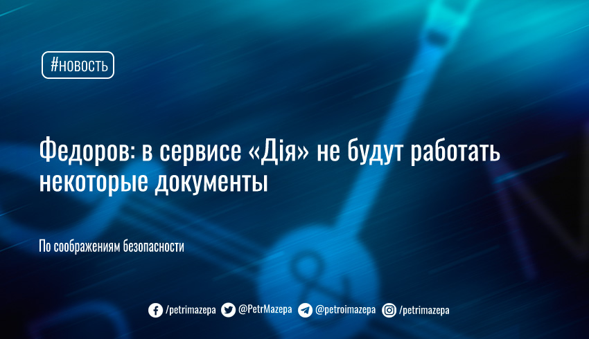 Федоров: в сервисе «Дія» не будут работать некоторые документы