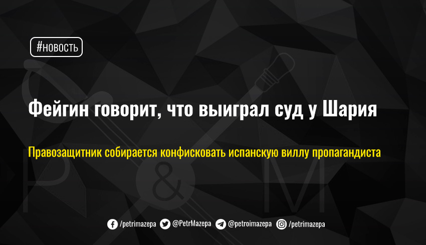 В Twitter Фейгин написал, что намерен начать процедуру ареста виллы Шария в Испании.