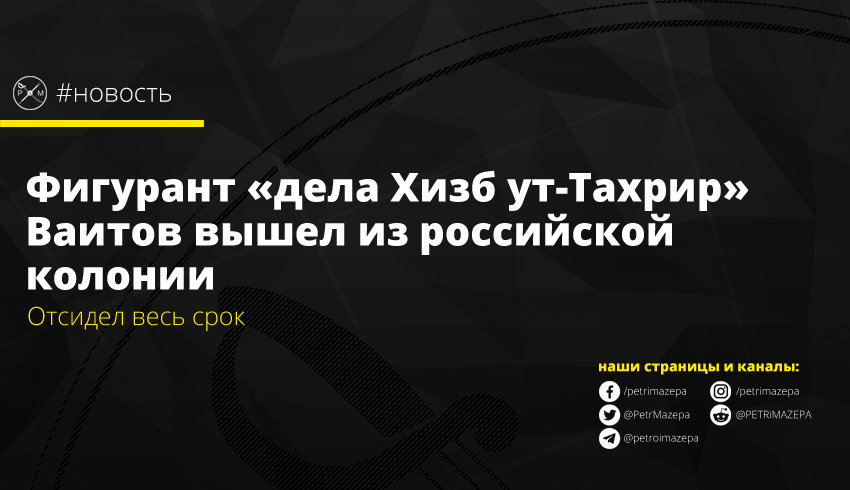 Фигурант «дела Хизб ут-Тахрир» Ваитов вышел из российской колонии