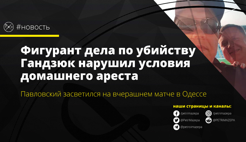 Несмотря на то, что подозреваемый в организации убийства общественной активистки Екатерины Гандзюк Игорь Павловский был отправлен под домашний арест, вчера он засветился на футболе в Одессе. Причем, чтобы добиться домашнего ареста, защитники Павловского доказали, что он чуть ли не при смерти.