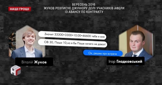- 25 февраля команда журналистских расследований Bihus.Info представила фильм, в котором Игорь Гладковский, Виталий Жуков и Андрей Рогоза обвиняются в поставках деталей в том числе из РФ по завышенным ценам – хищения по данным СМИ, дошли до 250 млн грн. Олег Гладковский был уволен с должности первого замсекретаря СНБО.
