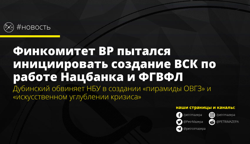 - Ранее Дубинский уже предлагал создать ВСК по деятельности НБУ и ФГВФЛ – 3 октября его сняли с повестки дня. А НБУ уже 9 октября заявил что не против расследования и не считает создание ВСК проблемой.