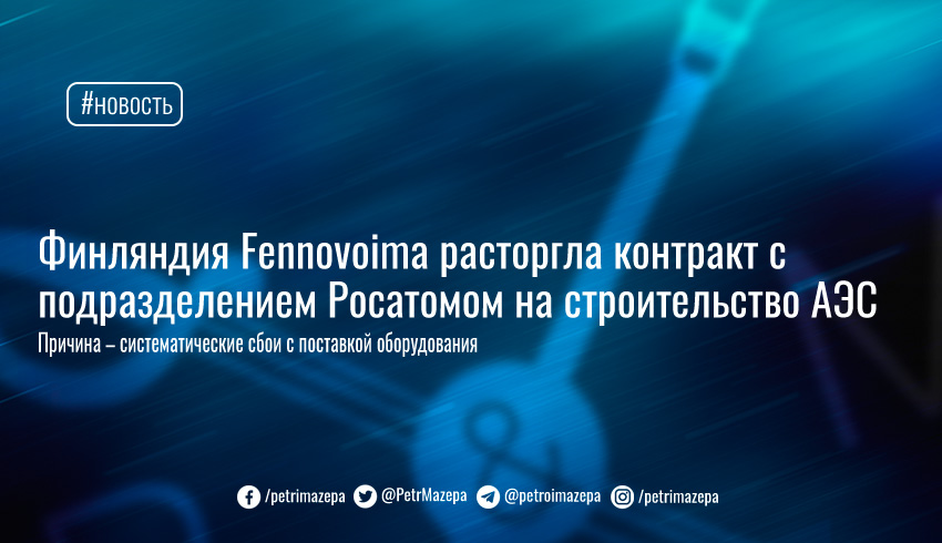 Финская проектная компания Fennovoima расторгла контракт с подразделением Росатома — RAOS Project — на строительство АЭС Ханхикиви-1 из-за систематических сбоев с поставкой оборудования, обострившихся после начала войны в Украине.
