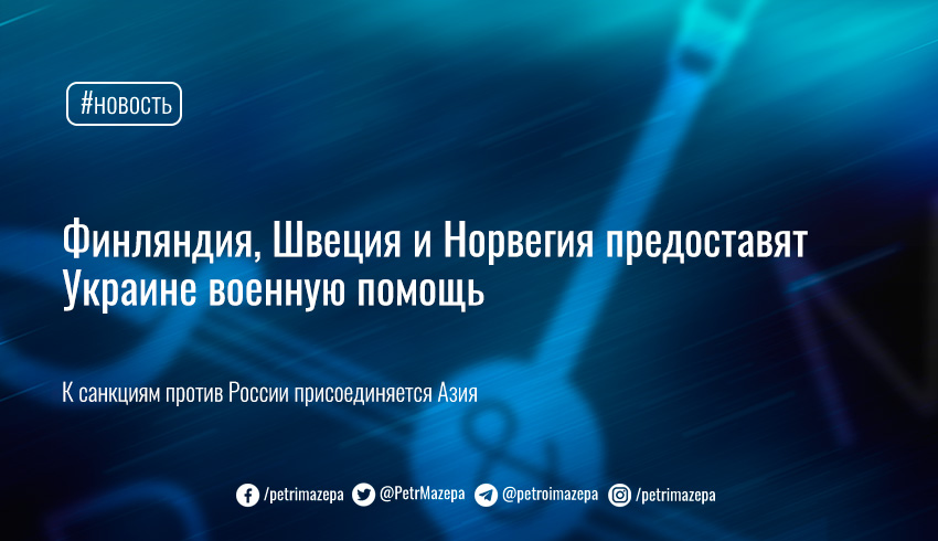 Финляндия, Швеция и Норвегия предоставят Украине военную помощь