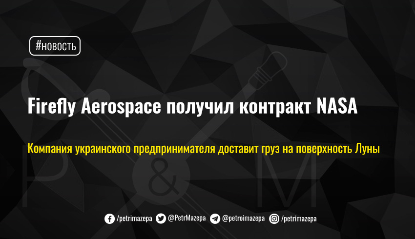 Американская компания Firefly Aerospace, которую в 2017 году выкупил украинский предприниматель Максим Поляков, получила от NASA контракт на сумму в 93,3 миллиона долларов для доставки 10 научно-технических устройств к Морю Кризисов на Луне в рамках программы «Артемида».