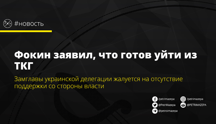 Первый заместитель главы украинской делегации в Трехсторонней контактной группе по Донбассу Витольд Фокин заявил, что через месяц может прекратить свое участие в работе группы.