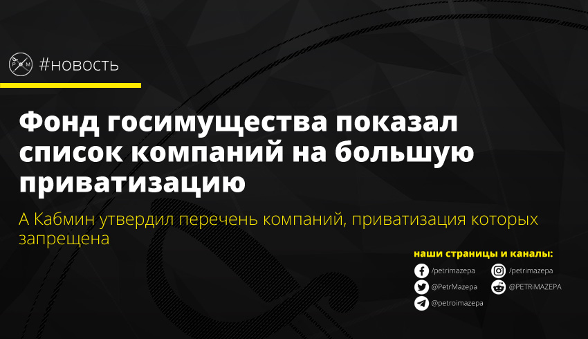 Фонд государственного имущества опубликовал в официальном издании «Ведомости приватизации» обновленный перечень крупных государственных компаний, которые планируют приватизировать. А Кабмин рассмотрел проект постановления, касающийся объектов, приватизация которых запрещена.