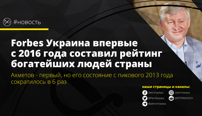 Журнал «Forbes Украина», впервые после перезапуска составил рейтинг ста богатейших украинцев. Последний раз такой рейтинг составляли в 2016 году. В рейтинге-2020 общее состояние топ-100 превышает 31 млрд долл.