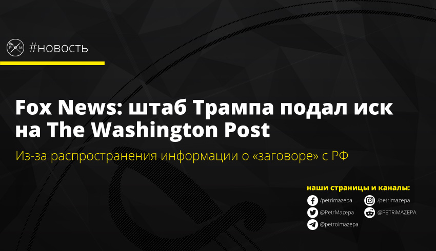 Fox News сообщает об иске на «миллионы долларов» за публикацию «ложных и клеветнических заявлений» о предполагаемом заговоре с Россией. Иск против WP был подан в окружной суд США в Вашингтоне, округ Колумбия, адвокатами Дэвидом Тобином и Чарльзом Дж. Хардером.