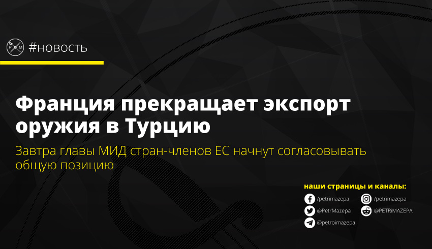 Франция решила прекратить поставки оружия в Турцию. Причина - проведение последней военной операции «Источник мира» в Сирии.