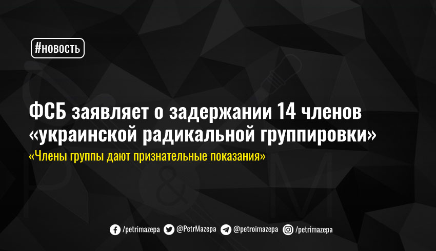 В ФСБ страны-агрессора заявили, что задержали 14 участников «украинской молодежной радикальной группировки» которую они называют «МКУ». Задержанные по данным ФСБ уже дают признательные показания.