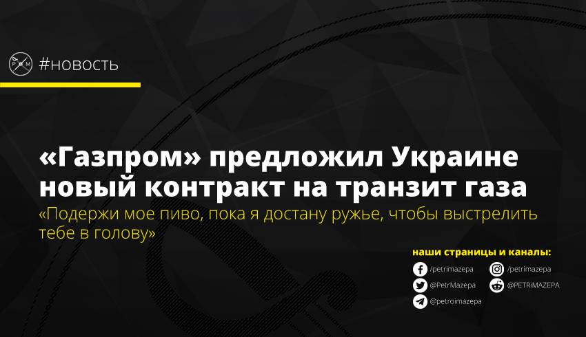 «”Подержи мое пиво, пока я достану ружье, чтобы выстрелить тебе в голову”. Никакой официальной информации от российской стороны относительно идеи короткого контракта у нас сейчас нет. Мы понимаем, что сегодняшний вброс это, вероятно, тестирование боем. С интересом читаем заголовки российских СМИ, подают это как решенный факт. Ну, потому что целых четыре источника! А, может, просто еще не доставили? Ждем почтовых голубей из Москвы. Уверены, в Брюсселе их тоже ждут», - говорится в заявлении.