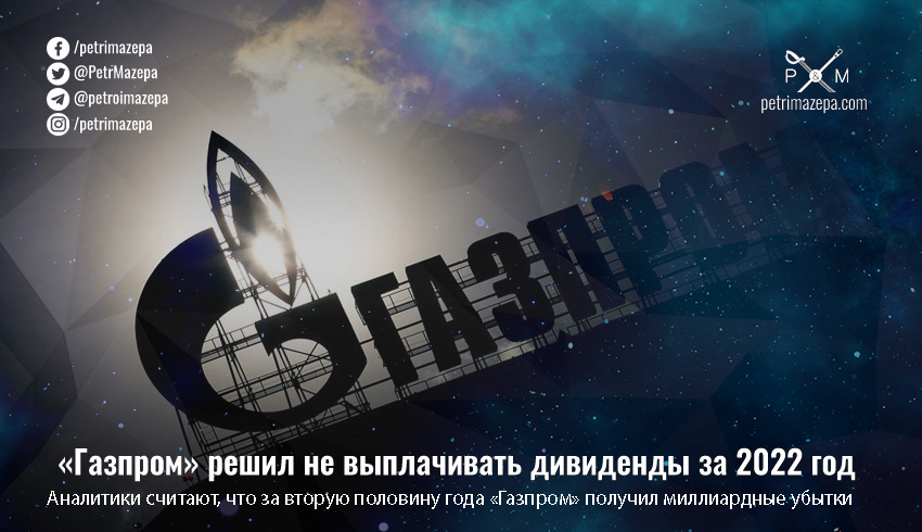 Российская компания «Газпром» решила, что их акционерам не будут выплачены и дивиденды за 2022 год. В компании заявили, что уже «обеспечили акционерам сверхприбыль» за счет промежуточных дивидендов, и финальные выплаты им не нужны.